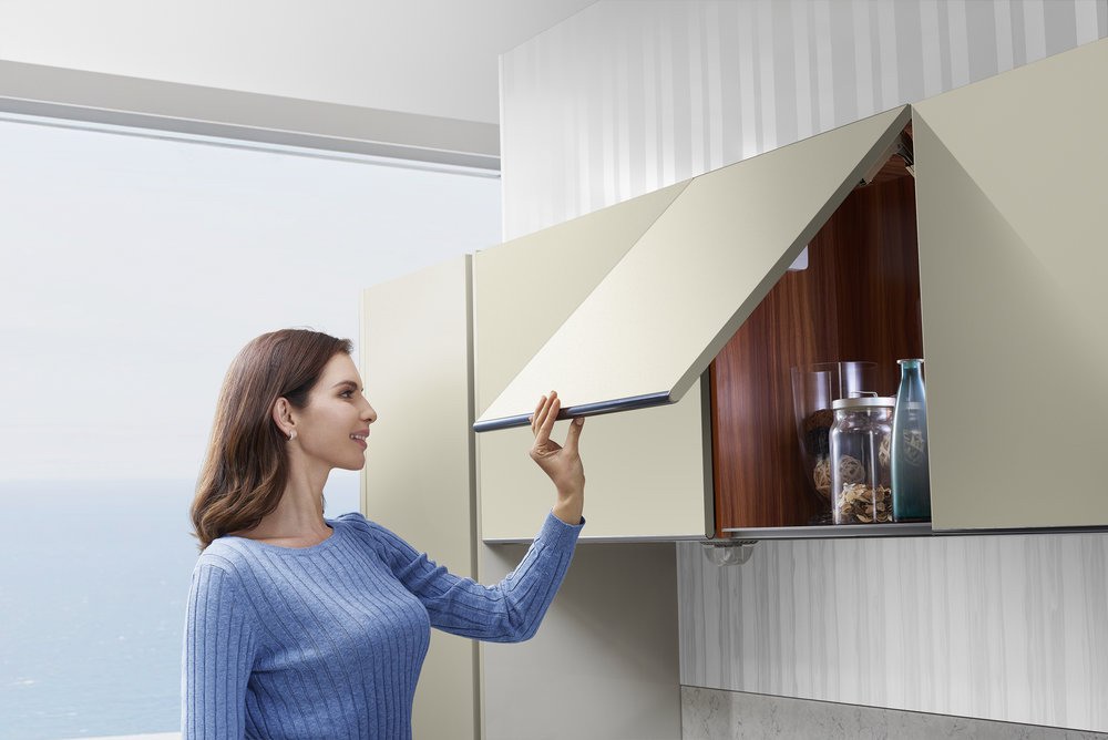 Như một giải pháp thay thế cho cửa bản lề truyền thống, thiết bị nâng dòng Top Stay (Treo phía trên) tạo ra động lực mới cho chức năng cửa tủ.